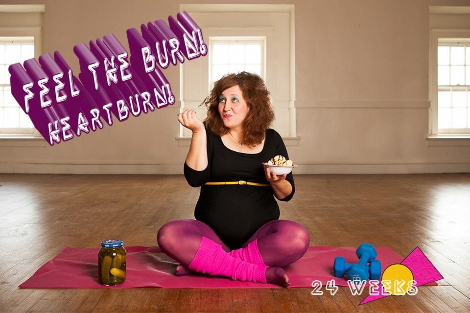 Welcome to 24 weeks and the 1980’s! Jane Fonda debuted her first workout video in 1982, the year I was born, and I remember doing workouts with my mom, so it was perfect! I am not actually craving pickles, but they were a good touch. 🙂