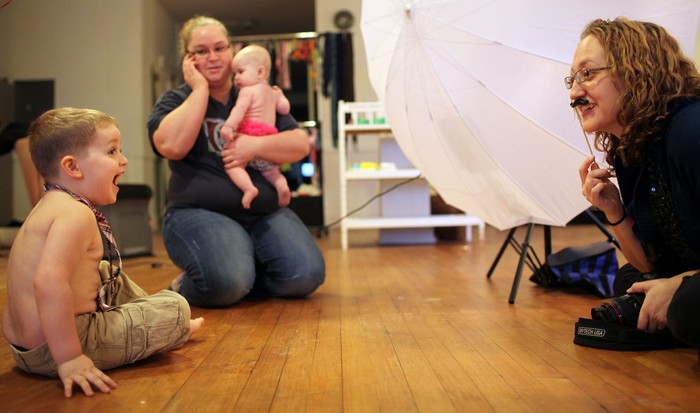I seem to run into John Lovretta from The Hawk Eye a lot! I’ve seen him downtown while I was shooting an engagement session,at the soldiers’ homecoming last fall, and even at a wedding last summer. He even photographed my little family a couple of summers ago for an article my friend Craig was writing about unique last names. Last Wednesday night, he came up to my new loft studio at 409 N 4th Street to shoot me for an article that Rex was writing for the business section.