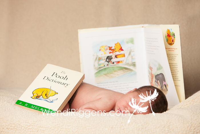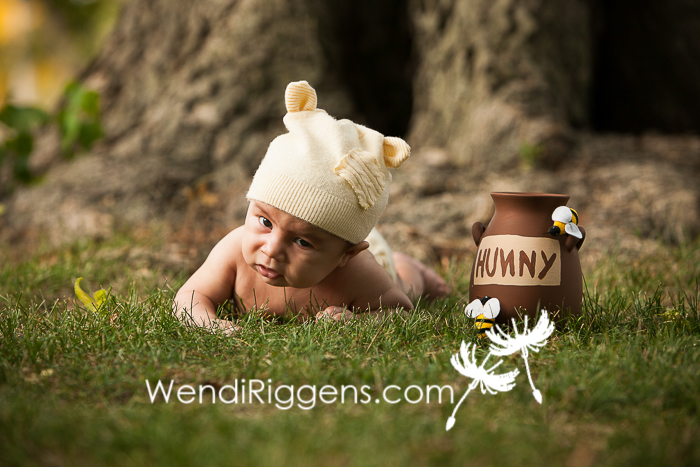 You’ve seen bits and pieces of this session over the last year. Callie and I met while she was pregnant, and she told me she loved Winnie the Pooh, especially Eeyore. She had ordered an Eeyore outfit on Etsy that we hoped to use for his newborn session, and it sounded so cute! Well, the Eeyore outfit didn’t arrive before Jarrett was born, so the morning of Jarrett’s newborn session, I messaged her to see if she had any classic or vintage Pooh books, and she grabbed a couple. We got to talking during that session and thought we would try Eeyore later, so she messaged the Etsy seller to get it in a bigger size. It was then we had the idea to do other characters, too. We wanted to keep them simple and understated, so that the focus was still on Jarrett. I reached out to some friends that make upcycled baby outfits for Pooh and Piglet, and I picked up the Tigger pieces for his 12 month session shortly after he turned 3 months! We had to incorporate Christopher Robin, too, of course! And to finish it all off, we had a Winnie the Pooh cake smash!